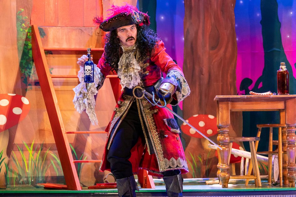 Connor Crawford captures Chris Bean’s frigid conceit so well that we cannot help but laugh as Chris’ portrayals of George Darling and Captain Hook land him in constant physical danger.