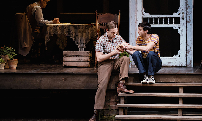 Miriam Buether’s rustic, representative set dissolves in and out as the “kids” jump back and forth between dramatic developments in the trial and key moments in the lead up to the court proceedings. Ann Roth’s costumes have a naturalistic earthiness, adding to the authentic feel of small town Alabama. Jennifer Tipton’s lighting completes the picture of a long hot 1934 summer.