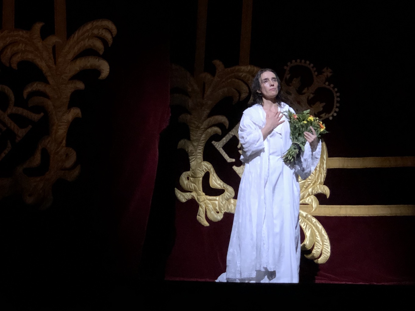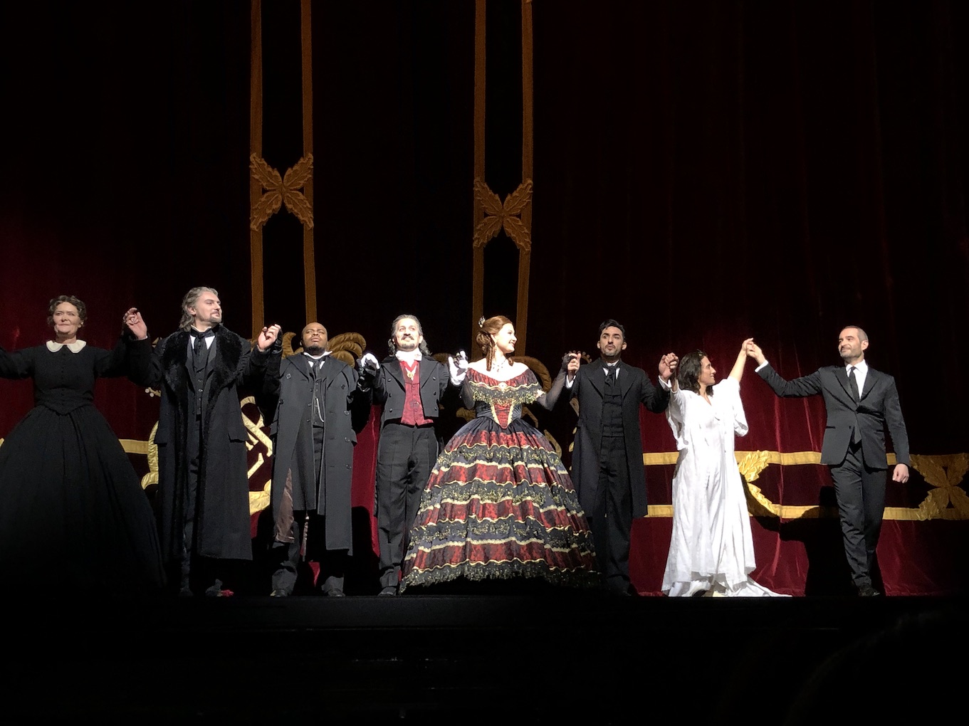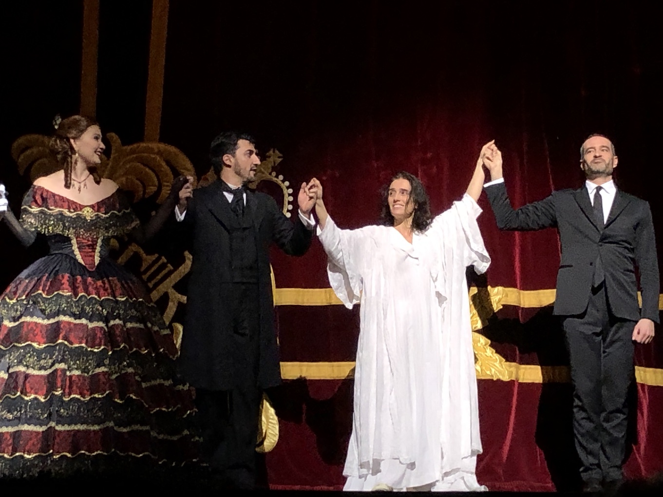 Amongst Jaho’s most impressive singing is the exquisite pianissimo conclusion to “Ah, fors’è lui,” which she sings lying on her back, basically breathing out the notes. During “Addio, del passato,” Jaho interpolates ghastly heaving breaths as Violetta clings to life, somehow doing so without interrupting the vocal phrasing in any way.