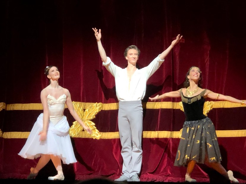 The Two Pigeons features some lovely corps work in act one, with the lively visiting gypsy boys dance with the Young Woman’s demure friends. In act two, the corps work is quite spectacular, as two dozen colourfully dressed gypsies dance with gay abandon.