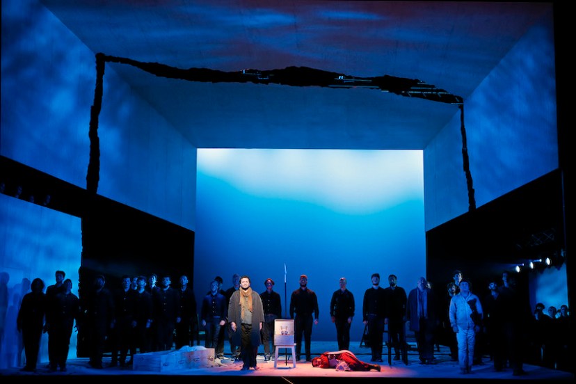 1. Great production. I thought the rift in the stage and up the walls also represented the cross under which the Grail Knights gather, a neat visual counterpart to one of the opera’s most famous lines: “The wound can be healed only by the spear that smote it.” Amfortas was stunningly good. It was a nice touch at the end, too, to have Kundry present the grail to the knights. A few quibbles: the swan was awful – either give us a proper, taxidermically preserved swan or something symbolic, not this horrible wire-and-feathers contraption. And the Matrix-like slow-motion disarming of Klingsor at the end of Act II was a bit lame. Otherwise an outstanding and imaginative staging.
