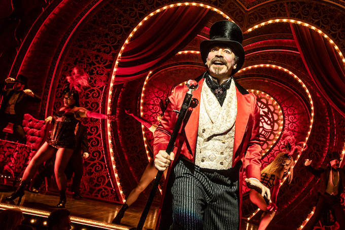 Danny Burstein brings a maniacally decadent grin to impresario Harold Zidler, who also serves as a very Emcee-like emcee. Tam Mutu figuratively twirls his moustache as the devilish, yet ultimately toothless, Duke.