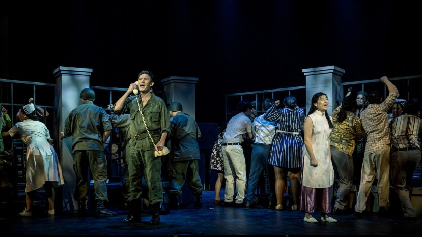 A natural follow-up to their success with Claude-Michel Schönberg and Alain Boublil’s Les Misérables last year, OSMaD gives Miss Saigon a similarly large-scale treatment. The splendid orchestra, led by music director Tim Verdon, features 22 musicians, eclipsing the 16 players of the recent West End revival. Adding to the enjoyment of hearing these musicians is the welcome use of a wide open orchestra pit. As well as leading the orchestra in a stirring performance of Schönberg’s operatically inclined score, Verdon also delivers rich chorus harmonies from the large ensemble.