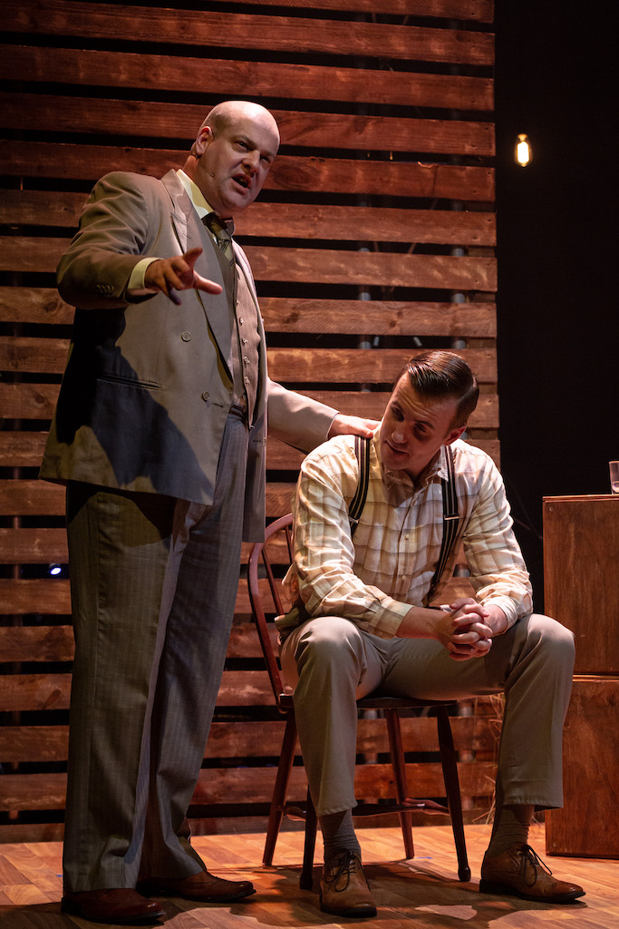 Making her Broadway debut, Carmen Cusack earnt a legion of admirers for her work as Alice, a role she played for the full life of Bright Star, from out of town tryouts to US tour. Cusack fitted the mature age Alice, becoming “younger” for the 1920s scenes. In contrast here, leading lady Kala Gare fits the age of young Alice, adopting a change of hair, costumes and body language to play the “older” Alice. There was a small chance that this change could have undermined the show’s intentions, but it works brilliantly, succeeding in no small part due to Gare’s magnetic presence and her exceptional talent as an actress.