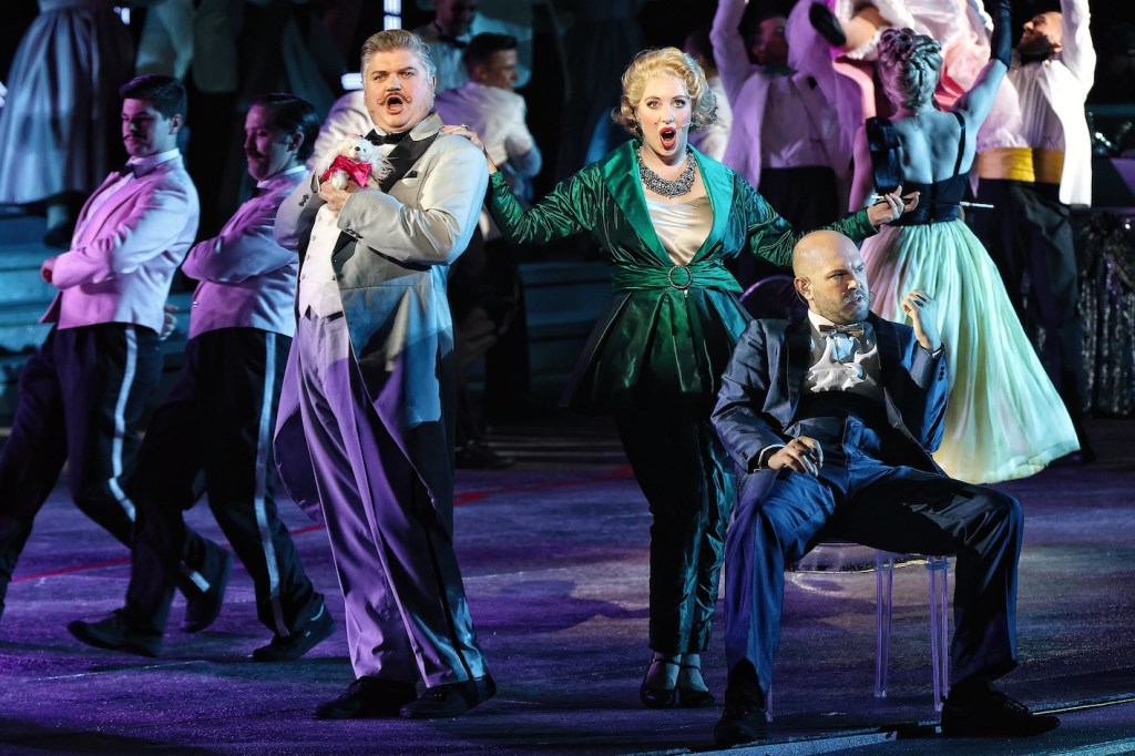 Costi boosts the spectacle by adding more choreography, particularly in the overture, in which the death bed setting of the 2012 production is replaced by Violetta jealously gazing at festive dancers, already longing for the lifestyle she is soon to lose. Choreographer Shannon Burns delivers crisp choreography that is delightfully showy and yet perfectly supportive of the story telling.