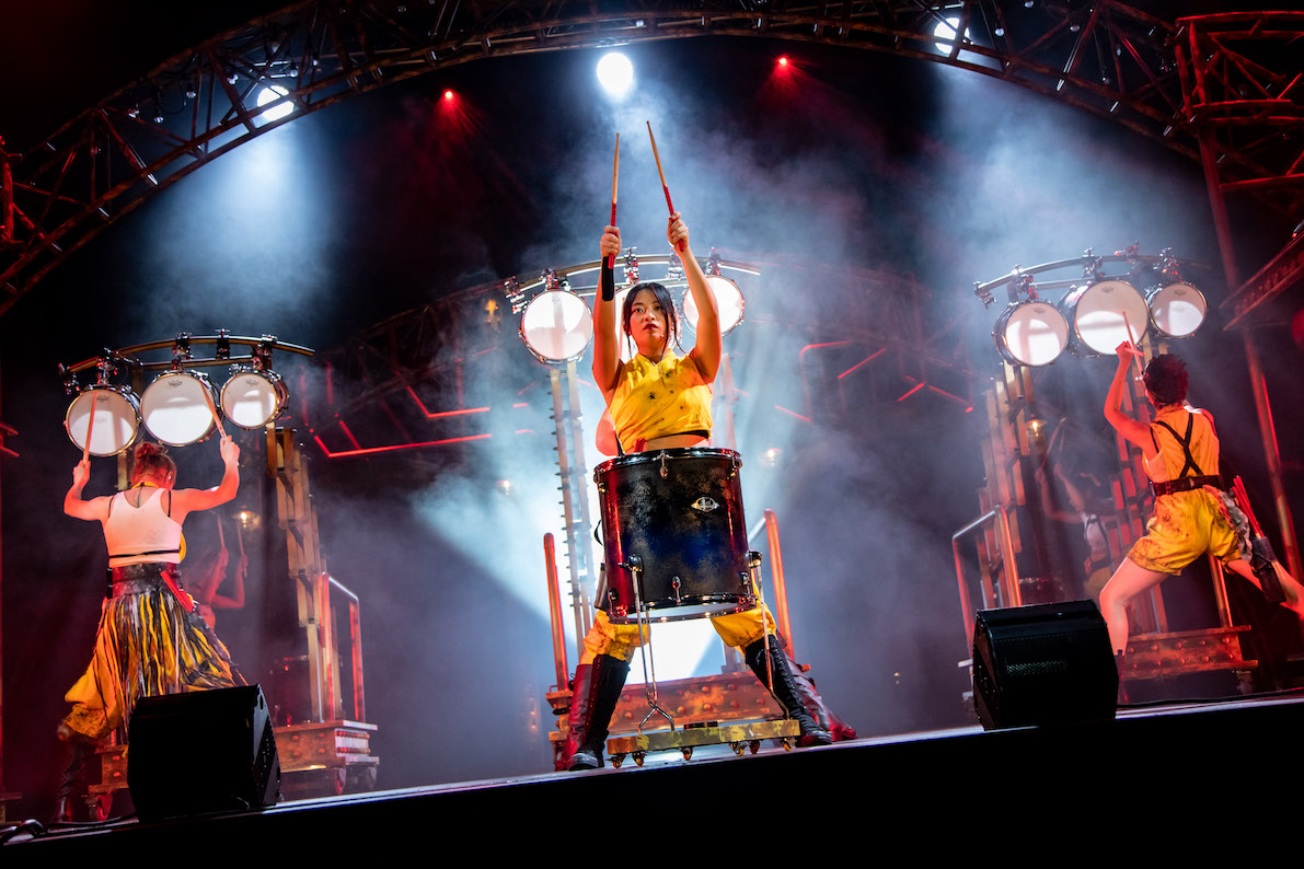 Choreographer Peta Anderson plays to the individual women’s strengths in staging moments of acrobatic dance. The creative team as a whole ensures that the stage is never static for more than a few seconds, keeping drummers, sets and lights in constant, smoothly synchronised motion.