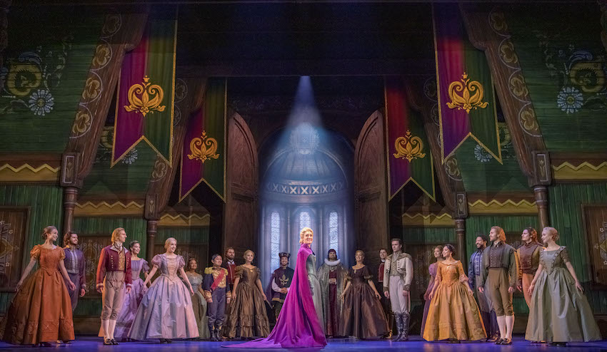 Frozen the stage musical is understandably respectful to the movie, with movie script writer Jennifer Lee bolstering her screenplay with deeper psychological interest and movie composers Kristen Anderson-Lopez and Robert Lopez more than doubling the number of their songs.