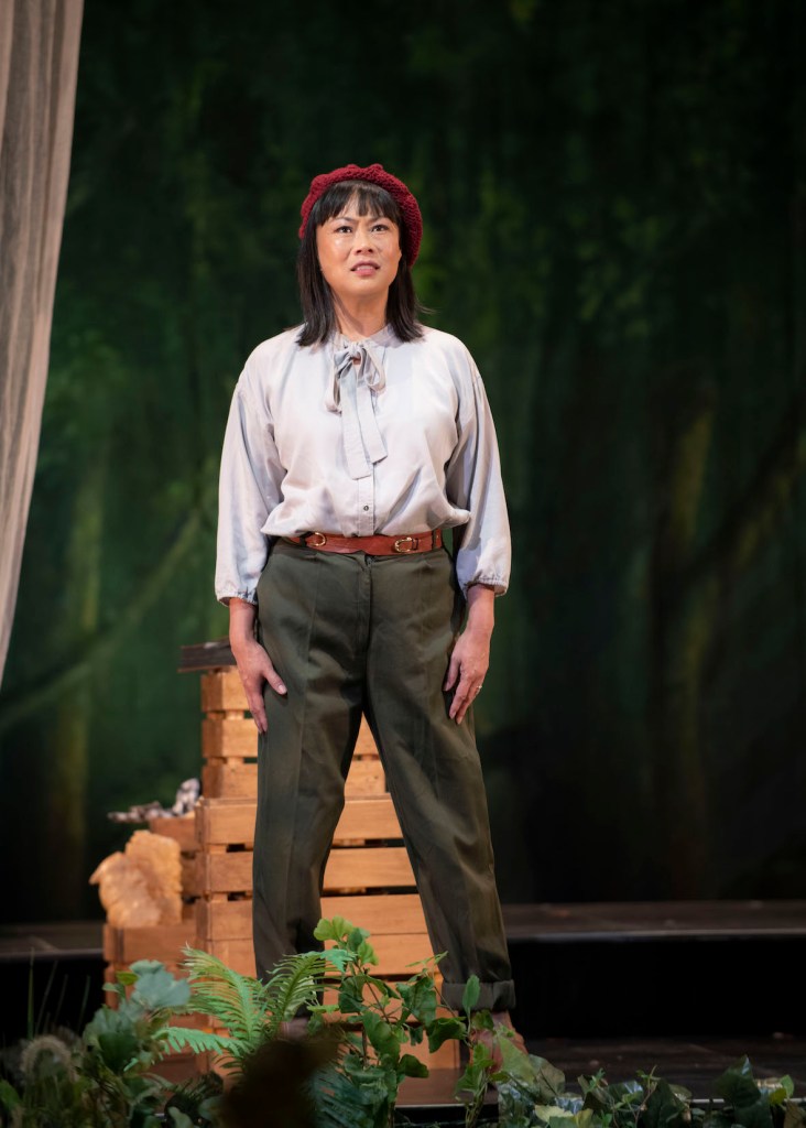 Fiona Choi and James Millar lead a sturdy ensemble cast as the resolute Bakers. Millar’s mellifluous vocal tone serves the music beautifully, his gentle speaking voice reinforcing the fact that the Baker’s Wife (literally) wears the trousers. Solid throughout, Choi’s performance reaches a heady zenith in the “Any Moment” / “Moments in the Woods” sequence, her Baker’s Wife melting like butter during an illicit royal intimacy.