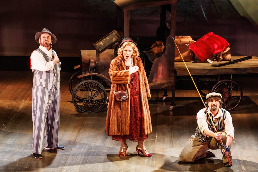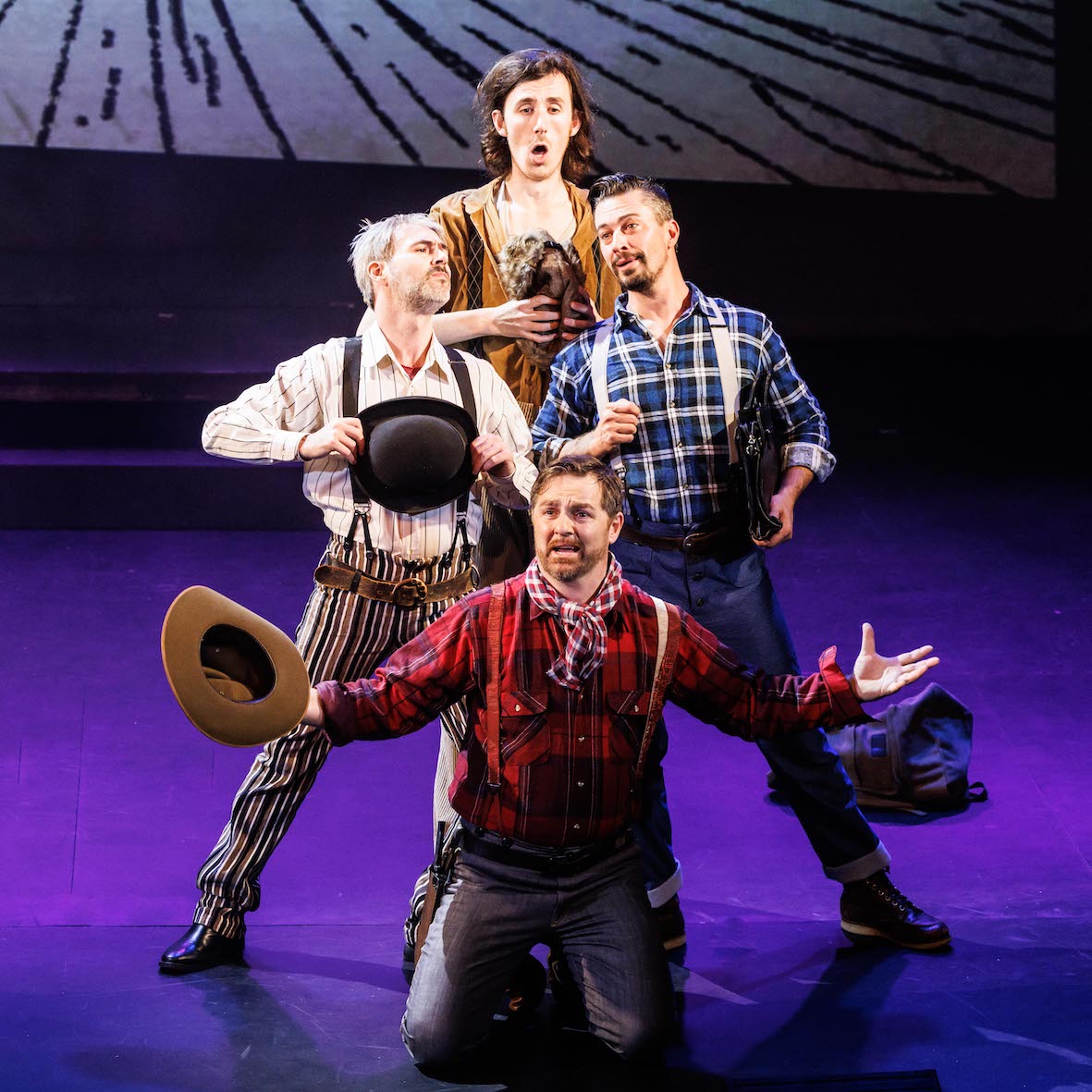 Egglestone’s fellow lumberjacks are played by Christopher Tonkin (Billy), Darcy Carroll (Joe) and Fraser Findlay Jack). The group’s harmonies blend beautifully together and each puts their stamp on a distinctive character. Lively baritone Tonkin makes a very welcome addition to the cast. Often seen as a key chorus member, Carroll makes the most of a featured role to exhibit dynamic flair. Findlay’s high tenor voice rings out clear and strong.