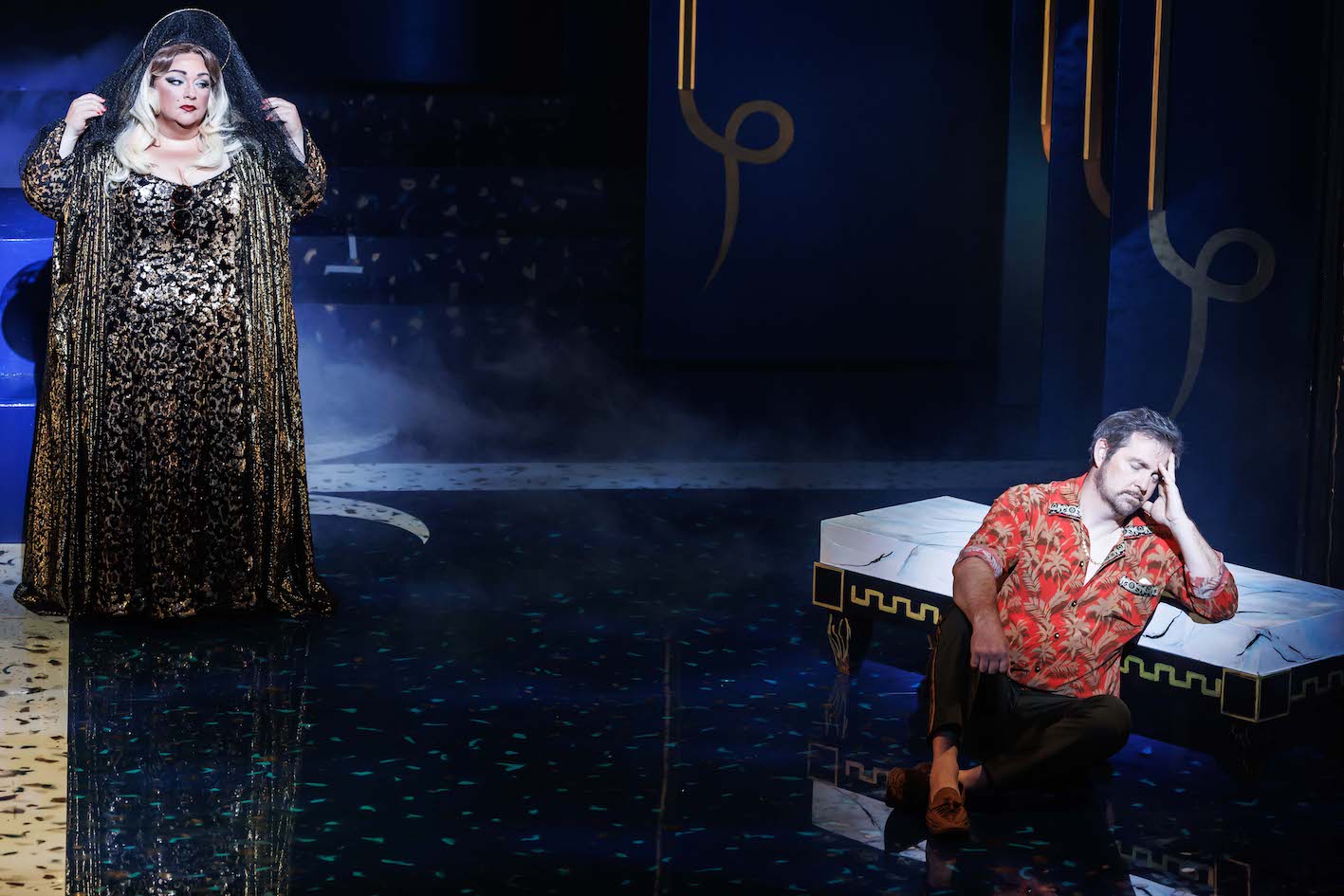 Tenor Alastair Cooper-Golec impressively seizes upon the featured role of Rustighello, playing him as a mischievous Iago to the Duke’s Otello. In gangsta tracksuit and gold chains, stalwart bass Eddie Muliaumaseali’i shines in a wonderful cameo as Astolfo.