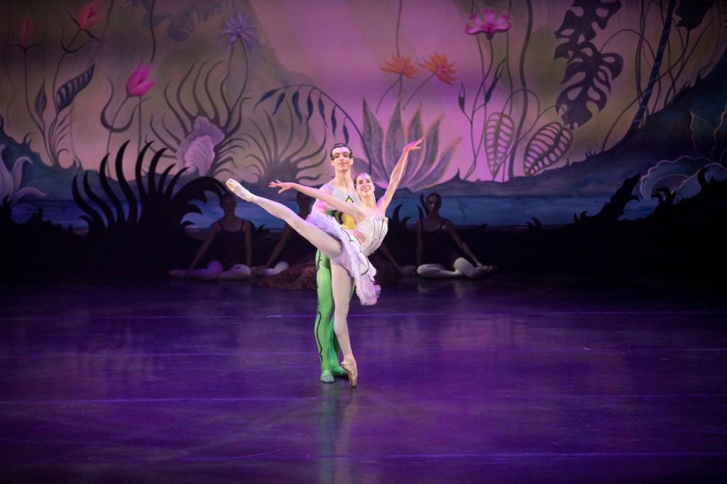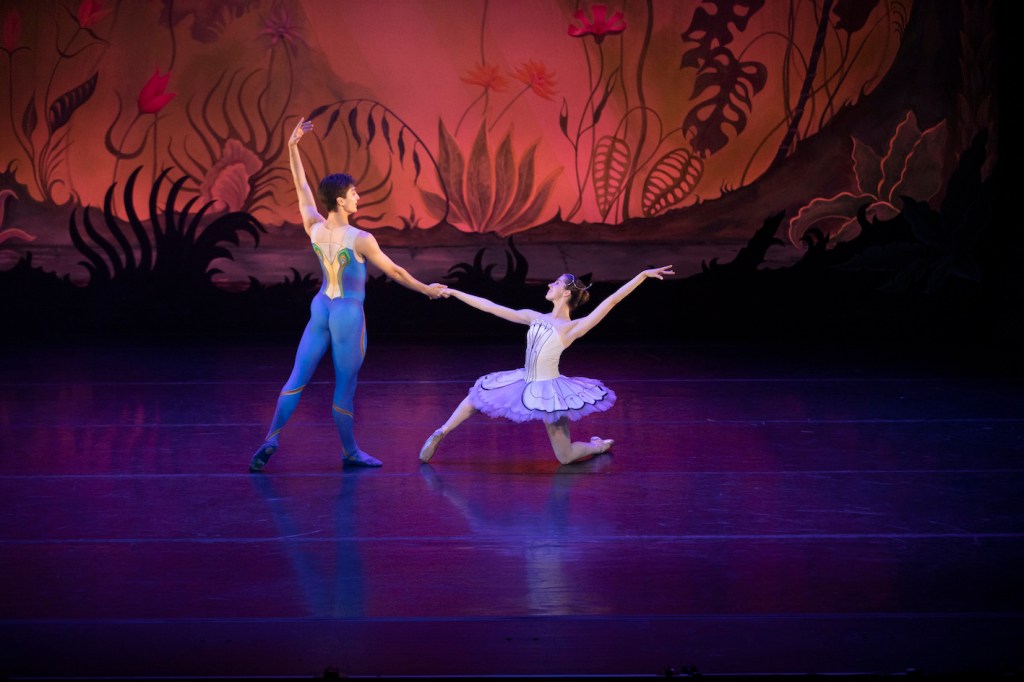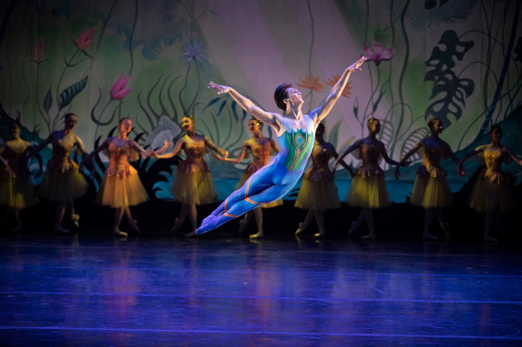With beautiful wings adorning their crisp tutus, the costumes of the female corps butterflies are an ingenious highlight of Hugh Colman’s design. Scenic design is relatively simple yet provides plenty of visual appeal.