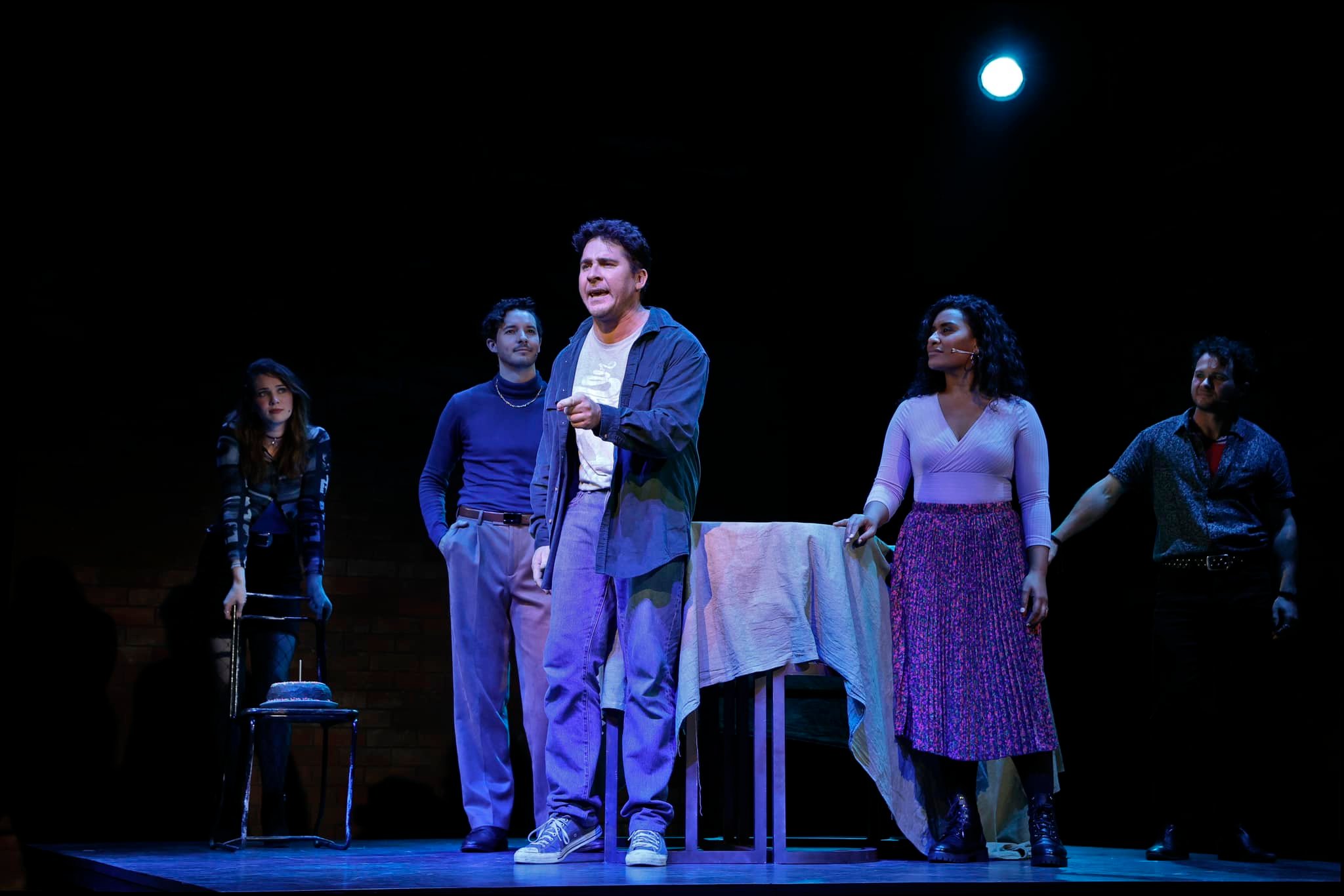 On keyboard, musical director Kohan van Sambeck leads four fellow musicians in bringing the variegated flavours of Larson’s light rock score to life. Affectionate Sondheim homage “Sunday” brings knowing laughs of enjoyment, and “No More” brings the strongest aural connection to Rent