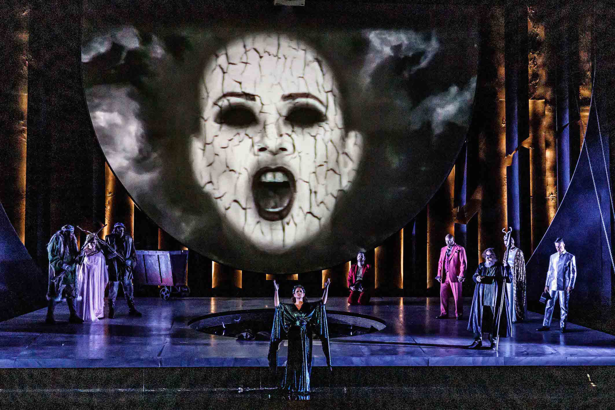 Deborah Humble joins the cast, raising interest levels at the eleventh hour with a finely calibrated, beautifully sung cameo performance as earth mother Erda. Erda may be warning Wotan about the danger of lust for gold, but the cracked, dry projection of her face suggests a deeper message of warning for the environment.
