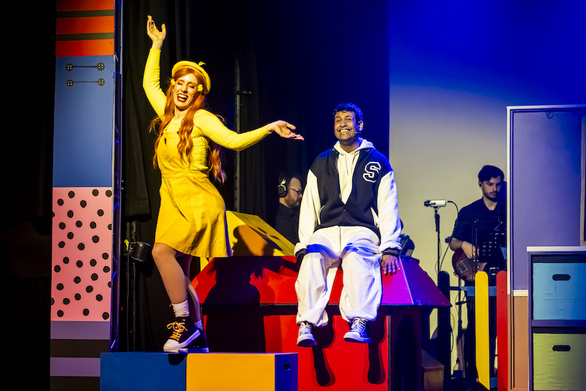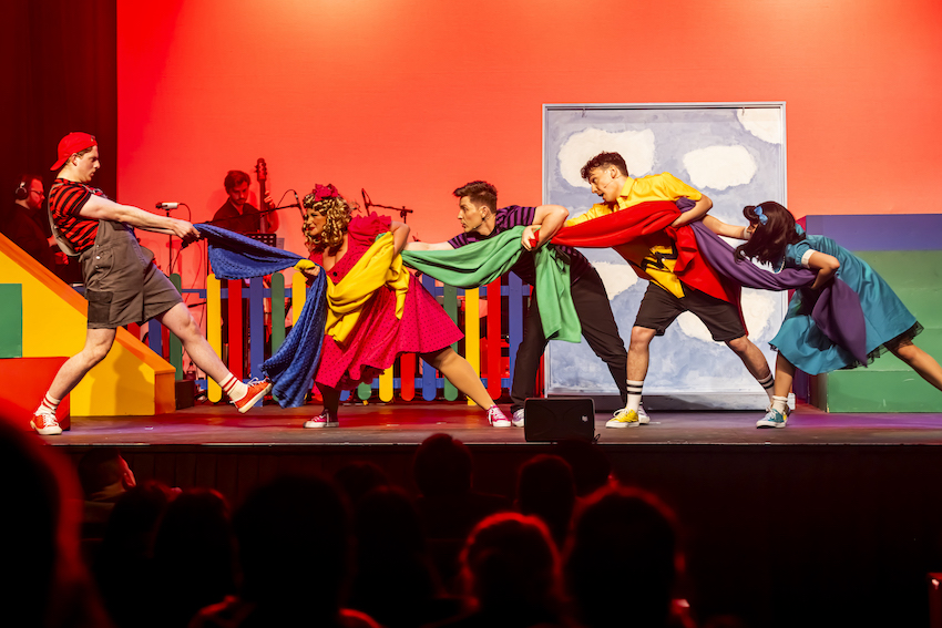 One more clever touch in the design is the custom-made proscenium arch, featuring blocks of the trademark clothing pattern of each character. Set, costume and lighting are vividly hued in rich primary colours, reflecting the vibrant world that kids love to inhabit.