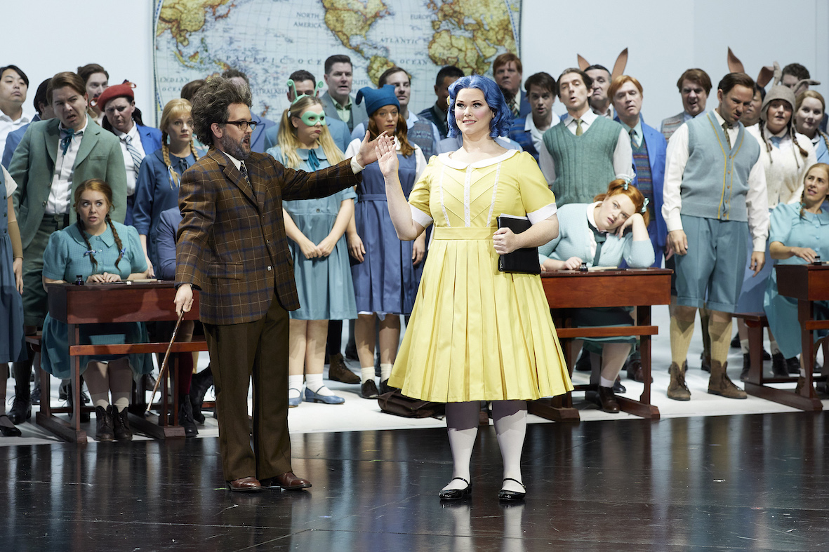 As seen in earlier Opera Australia presentations Cavalleria Rusticana / Pagliacci and Il Viaggio a Reims, the spectacle of Michieletto’s innovative approach is perfectly complemented by his respect and knowledge for the original intentions of the composer and librettist. Bold strokes here include dancing rats during the tale of Kleinzach, The Muse delivering Nicklausse as a vibrant macaw, and the placement of living doll Olympia in a rowdy classroom.