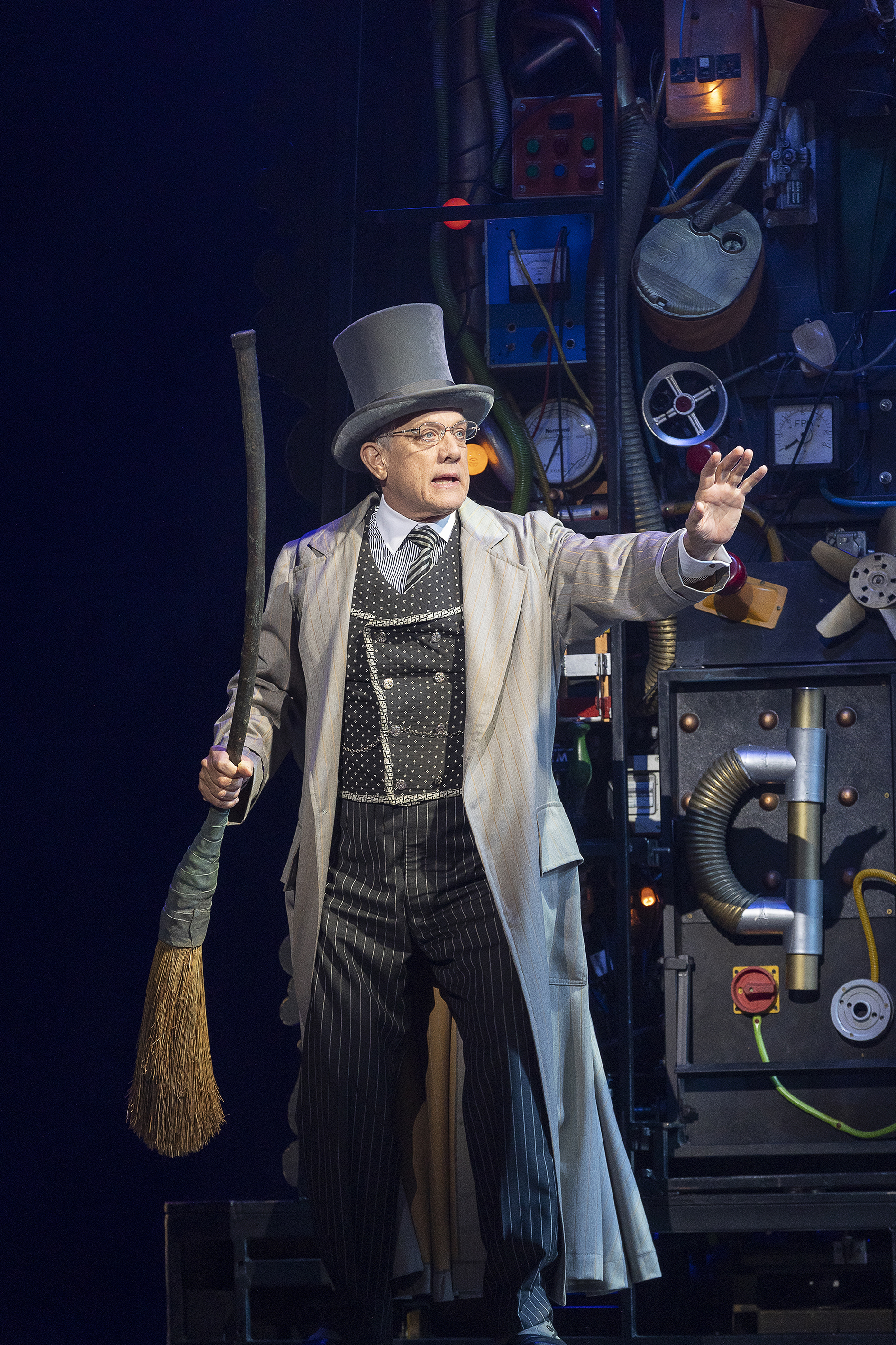 Winners of 2004 Tony Awards, Eugene Lee’s scenic design and Susan Hilferty’s costume design are as impactful and imaginative as ever. Hilferty crafts myriad individual costumes for the full company, her work distinguished by the ingenious use of zany angles and curves along with richly textured fabrics. Lee riffs on the clock of the time dragon, with might mechanised dragon overhead and collages of clockwork cogs framing the action. Making a fabulous feature of hundreds of small embedded lights, Kenneth Posner’s lighting design completes the visual feast.