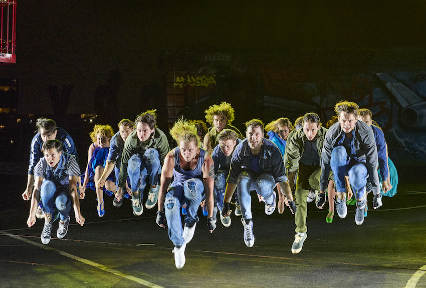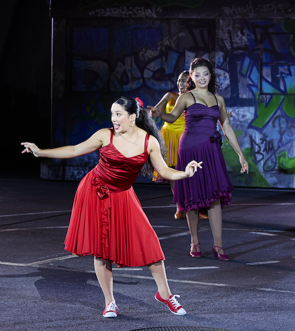 Written by the godly triumvirate of Arthur Laurents (book), Leonard Bernstein (music), and Stephen Sondheim (lyrics), the evergreen golden age musical is seen at its best in this confidently conceived production. With much of the action set on the streets, the outdoor staging is a natural fit. The enormous stage gives the high-energy dance plenty of room to breathe; when the stage teems with the full company the result is absolutely electric.