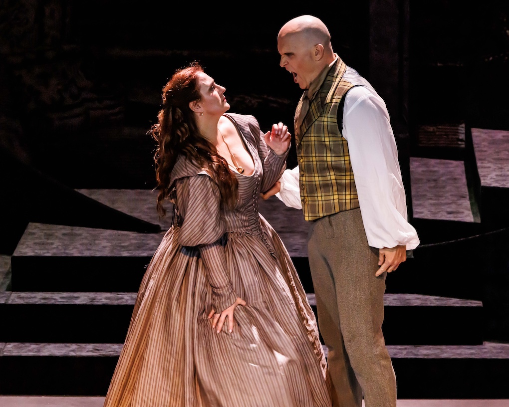 Her lustrous soprano in peak form, Elena Xanthoudakis gives a memorable performance in the iconic role of Lucia. Xanthoudakis deftly draws affection from the audience in her opening solos, haunting ghost story “Regnava nel silenzio,” and passionate declaration of love “Quando rapito in estasi.” Xanthoudakis enjoys warm chemistry with every partner, even Simon Meadows as Lucia’s insidious brother Enrico.