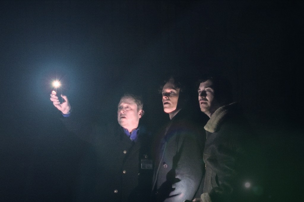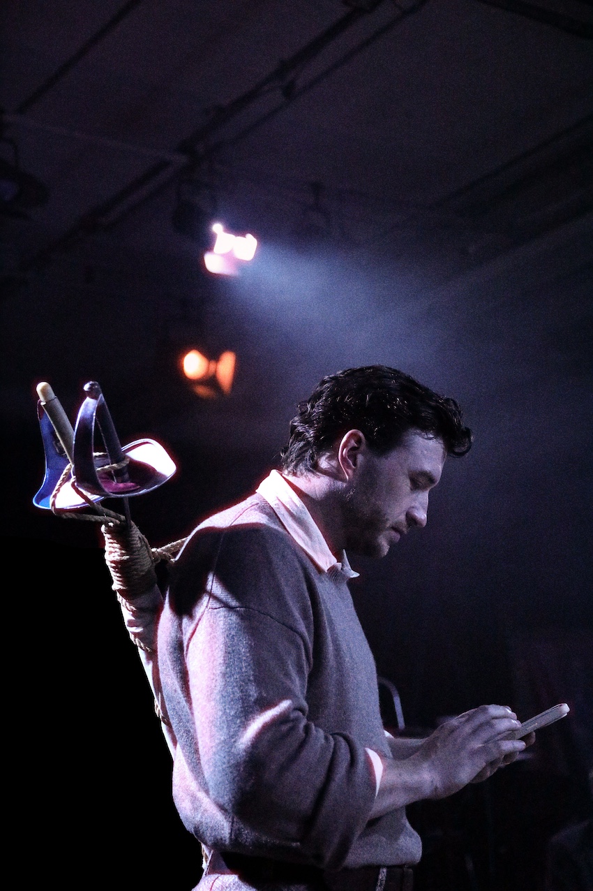 The present day setting allows for the incorporation of smart phones, providing humour in their familiarity and eeriness in their ghostly lights. The opening moments of the play, performed in the near blackness of just one phone light, includes fiercely loud bangs and is genuinely frightening. When Hamlet ventures to see the Ghost for himself, his companions light the scene with their smart phones to further spooky effect.