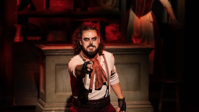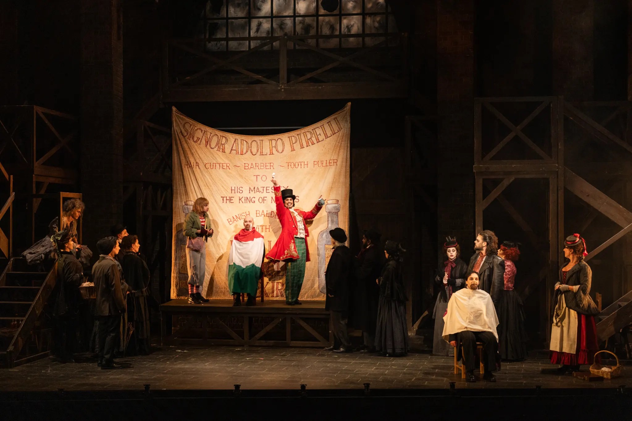 Delightfully dressed as a cross between Captain Hook and Willy Wonka, Euan Fistrovic Doidge brings delicious flair to the colourful role of showy barber Pirelli. As strong an actor as singer, Doidge nimbly delivers the patter of “The Contest” and successfully lands the humour of the reveal of Pirelli’s true self.
