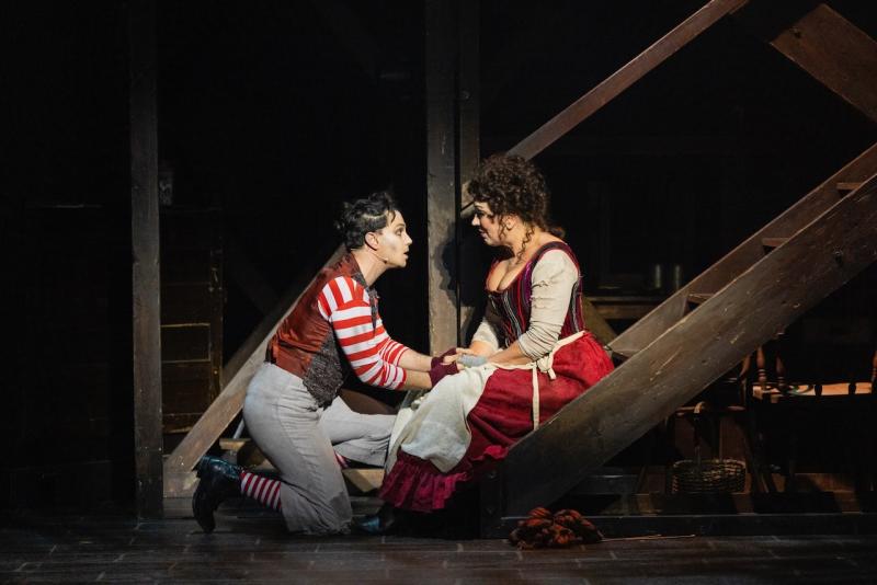 As the poor dear Beggar Woman, Margaret Trubiano wins the audience with sharp comic timing, amusingly flipping between the woman’s pitiful cries for alms and her fiendishly saucy attempts at prostitution. Trubiano also sings the role with plaintive beauty.