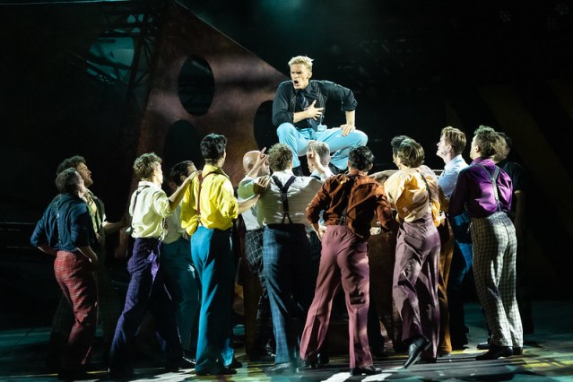 Amidst the boyish dancers of the male ensemble, John Xintavelonis brings an invaluable characterful maturity to outspoken gambler Harry the Horse.