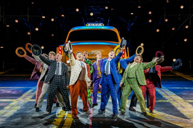 Plenty of the action of Guys and Dolls actually takes place outside, making the open air setting a neat fit. Brian Thomson’s stylised scenic design centres upon a fabulously oversized yellow taxi cab, with the yellow and black motif continuing on to scattered dice, roadworks, and even the mission pamphlets and turf form guides.