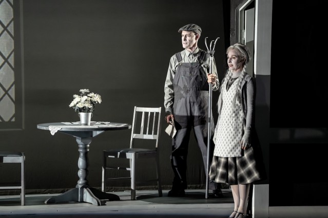 With visual style as vital as acting, designers for the new staging capably provide a bold, witty playfield that perfectly complements the comedy. Set and costume designer James Browne pays homage to Hitchcock’s film with a shimmering greyscale palette, giving the very convincing effect of watching a black-and-white movie live on stage. Browne plays with perspective using sharp angles to conjure the type of 3-D effects that a movie creates on a 2-D screen.