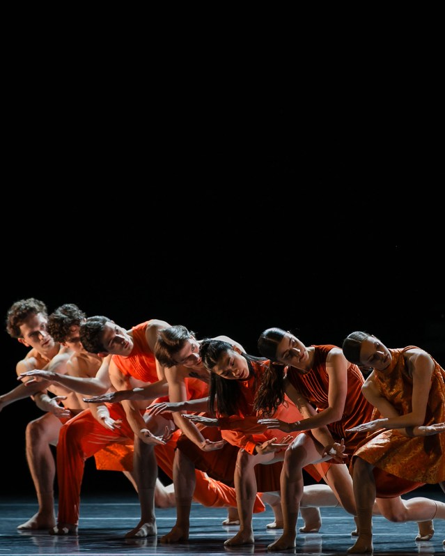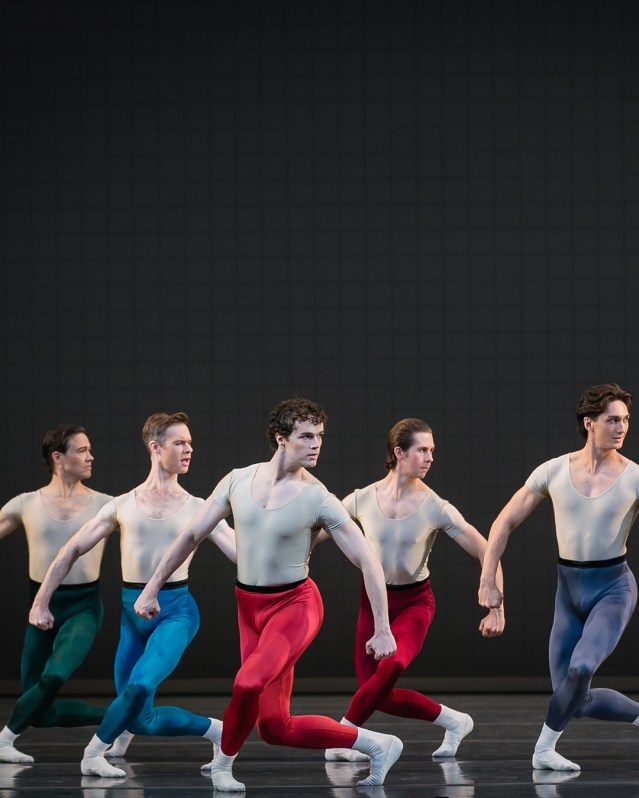 Colourfully attired dancers fill the stage for the climactic third piece, with the initial troupe of male dancers acceding the stage to the female dancers before the full ensemble combines for a dazzling finale. It might be reductive to mention a hint of Jet-like formation from the men and a vague sense of “Dance at the Gym” from the full company, but these familiar elements of Robbins’ best known work provide a comforting hint of his broader palette of inspiration on stage.
