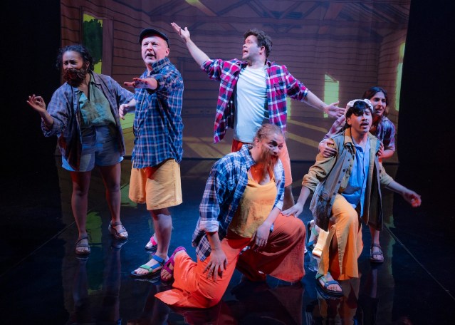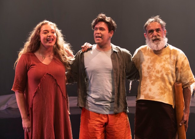 Orchestrated by music director Heidi Maguire, Makan’s tuneful score is instantly accessible, paying homage to a wide a range of popular Australian styles, from The Seekers to Jimmy Barnes. Maguire conducts a tight band of four musicians who bring the music to toe-tapping life. The production respectively gives the musicians a headshot and bio in the program: Billy McPherson, Ann Metry, Kathryn Stammers, and Lee Mallinson. In the uplifting finale, McPherson joins the cast on stage, filling the space with his vibrant and expressive playing of the yidaki.