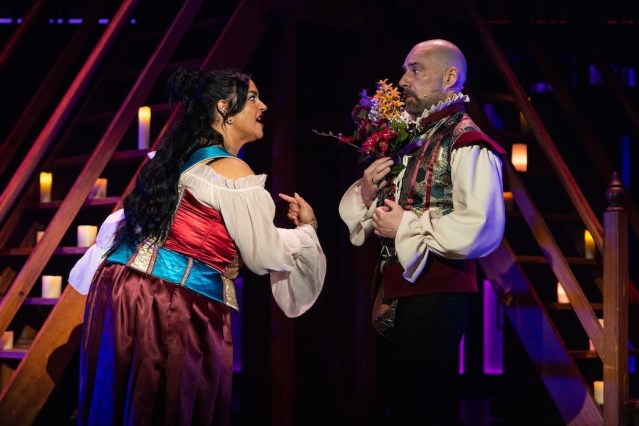 Tim Maguire gamely channels the requisite amount of narcissism to colour Romeo as a self-serving love rat. Melanie Ott is the definition of luxury casting in the featured role of Lady Capulet, ably supported by Sujanthan Satkunarajah as Lord Capulet. (Side note: Ott’s Lady Capulet costume would be at home on the stage of the Metropolitan Opera in a season of Donizetti’s Tudor Queens trilogy.)