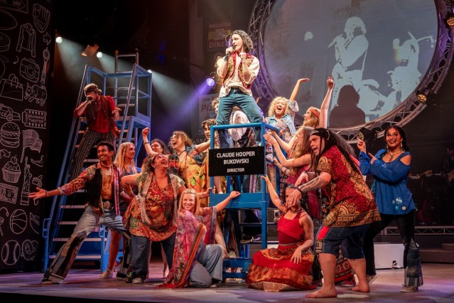 Production designer Kaspa makes impressive use of the tight Athenaeum stage, allowing an organic feel to the storytelling as the cast casually move ladders and platforms into place. Overhead screens display atmospheric projections, supported by the lighting design of Harrison Cope, especially during the extended psychedelic drug trip of Claude in act two. Given that the action takes place in basically the one location, Casper and Cope provide plenty of visual interest and variety as the musical progresses.