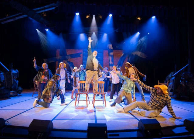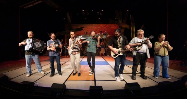 With the band upstage, Wills often has the characters approach the footlights, forging a strong bond with the audience. The terrific band of eight musicians is well respected within the staging, joining the actors in a semicircle to begin the performance, appearing centrestage during “Screech In,” and taking part in the curtain calls. Music director David Barrell has assembled a team of talented musicians, all uniquely capable of playing the quirky instruments required for the orchestration. Instrumental and vocal music are prepared to the highest standard, allowing the rollicking score to be enjoyed at its best.