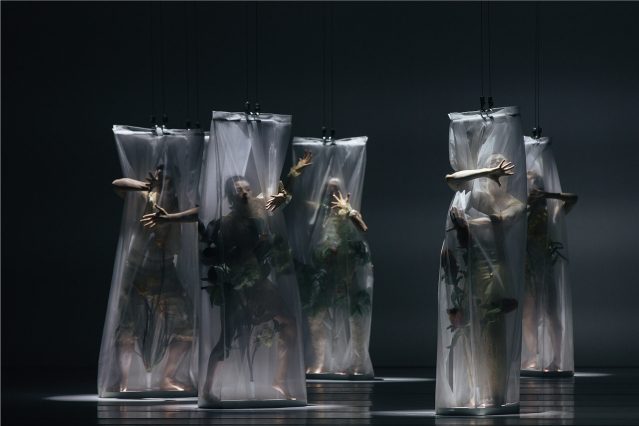 As act two begins, a collection of species removed by Sir Joseph Banks are joined in their display cases by twisted human forms in a clear personification of the unnatural placement of flora as museum artefacts.