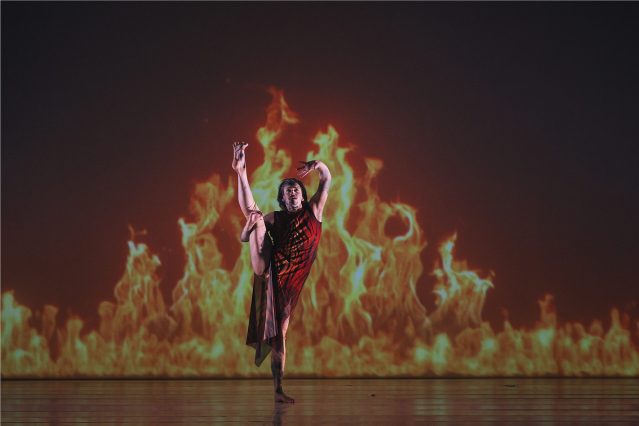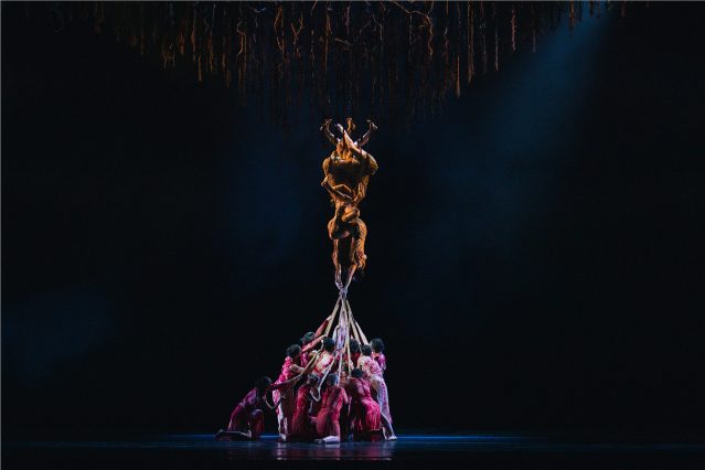 On an open black stage with very few scenic elements, the costume design of Grace Lillian Lee can be admired in all its stunning glory. Lee not only draws from a gorgeous palette of evocative colours, but also uses expertly chosen fabrics that play with the light and move beautifully with the dancers.