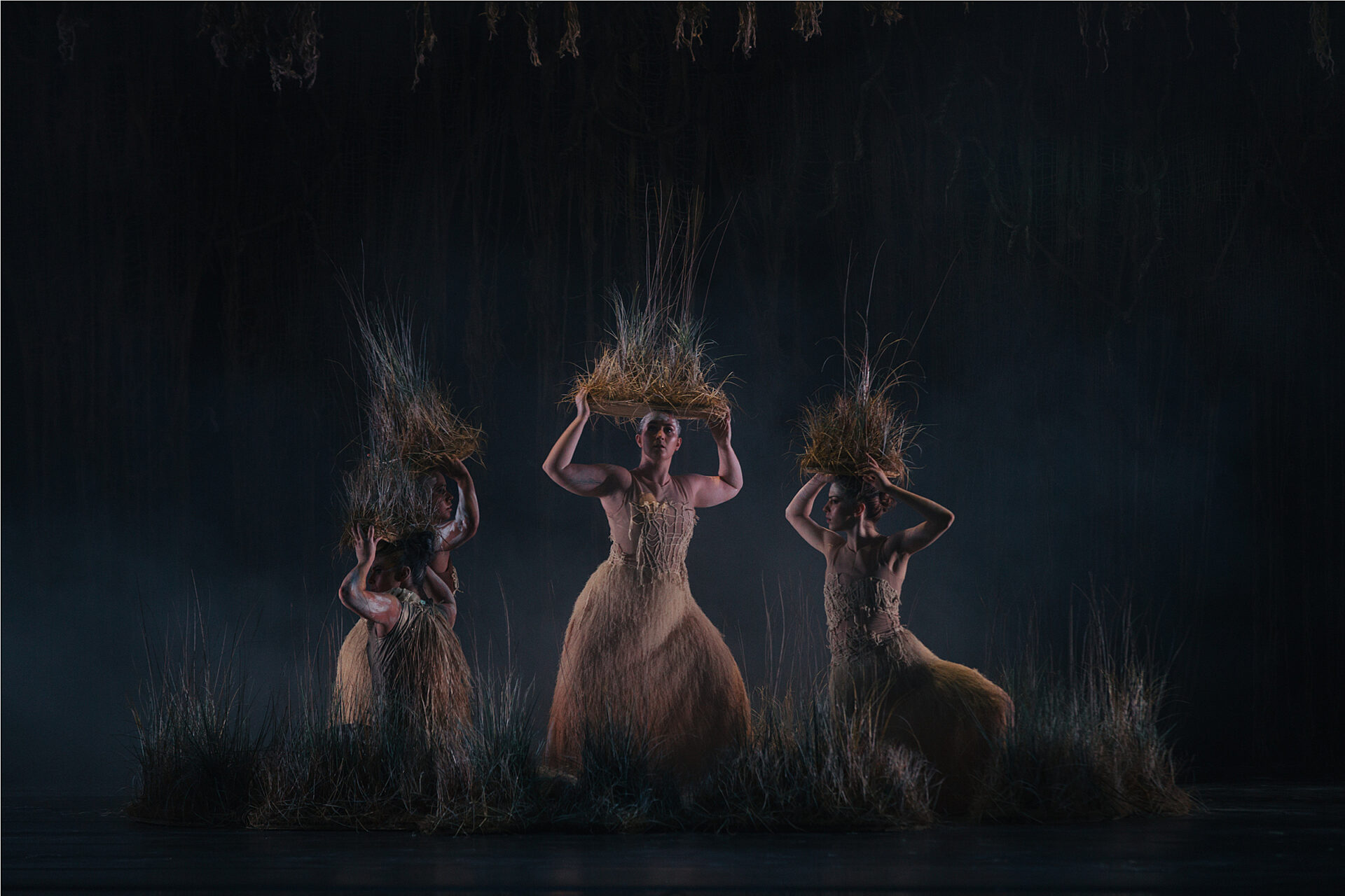 Composer William Barton and choreographer Frances Rings have crafted a free flowing series of 12 movements that follow a generally linear timeline of nature. Seeds lead to sleeping yams and then grasses, each aspect respected for its cultural meaning. As act one concludes, the natural flora of Australia is disturbed by colonisation, serving as a metaphor for the wider intrusion upon First Nations societies.