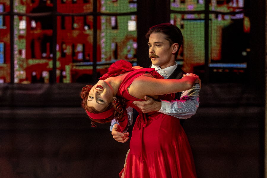 Equally lavish is the costume design of Sophia Drakos, with jewel-toned dresses and smart suits deftly fitted to allow the dancers freedom of movement. Principal costumes are cleverly designed to convey character and deftly support the storytelling. Meanwhile, the ensemble members sport new costumes every time they step on stage, all perfectly suited to the style of elegant parties or underworld bar scenes.